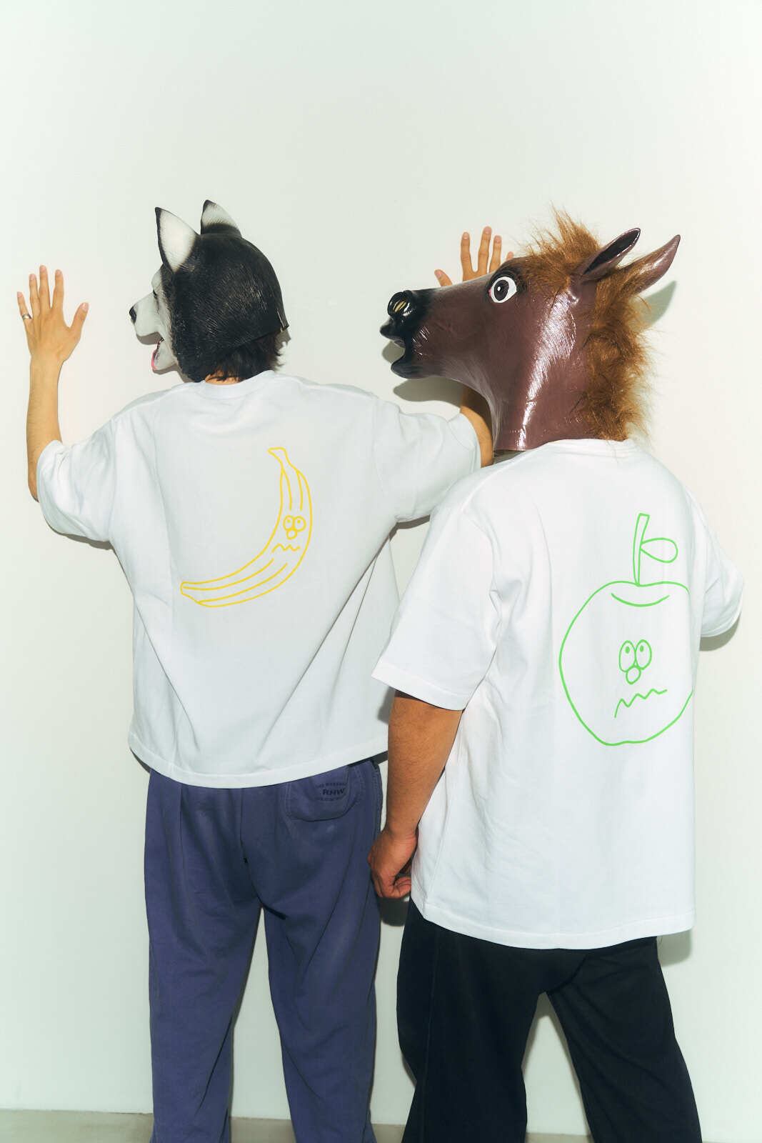 代官山青果店×KenKagamiのコラボTシャツが登場!個性的なキャラクターデザインと、独特な色使いが目を引く一枚です。特に注目すべきは、青リンゴをモチーフにしたデザイン。シンプルながらもインパクト大のプリントが、コーディネートにアクセントを加えます。 KenKagami氏の斬新なアートが、街中でもファッショナブルな着こなしを演出すること間違いなし!カジュアルながらも個性を発揮できる一枚です。